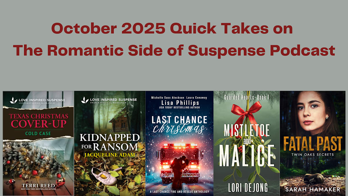 I had the honor of guesting on Sarah Hamaker's The Romantic Side of Suspense Podcast -- a short Q&A for Quick Takes and a longer interview that will air in 2026. Click Quick Takes link below to hear snippets about newly released or upcoming romantic suspense novels, include Mistletoe and Malice!